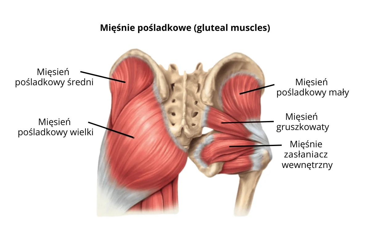 Mięśnie pośladkowe to grupa mięśni znajdujących się w tylnej i bocznej części miednicy, obejmująca: