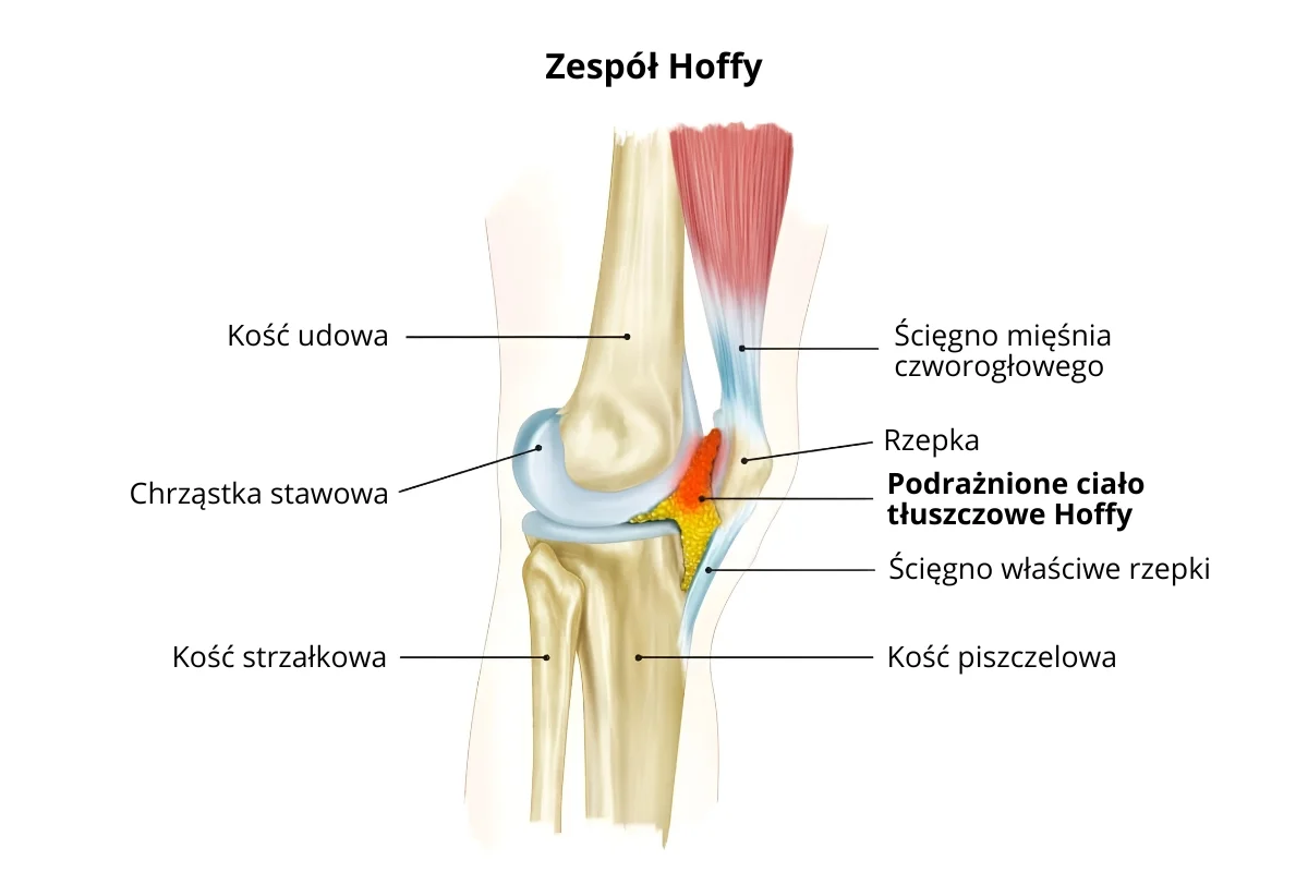 Zespół zakleszczenia lub podrażnienia ciała tłuszczowego Hoffy, znany również jako zespół Hoffy, to dokuczliwa dysfunkcja przedniego przedziału stawu kolanowego. Pomimo że nie należy do najczęstszych schorzeń ortopedycznych, może znacząco wpływać na jakość życia pacjenta — zarówno w codziennym funkcjonowaniu, jak i podczas uprawiania sportu.